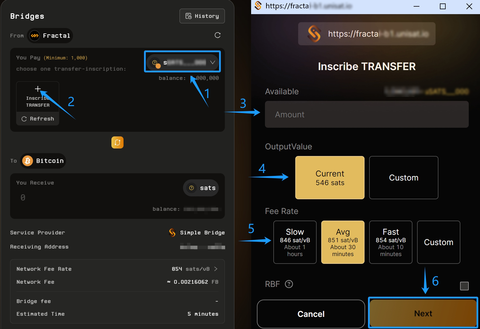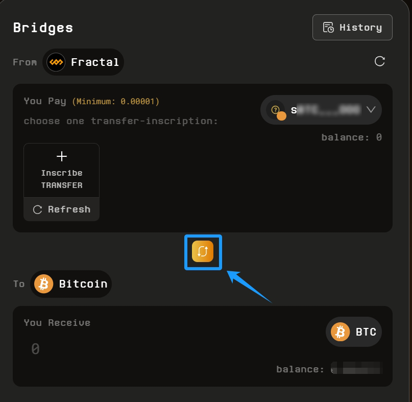 您可以随时访问桥接历史页面查看您的桥接存入和提现历史:https://fractal.unisat.io/bridge/history
